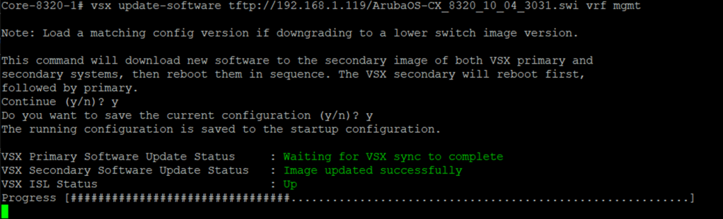 As you might know there is a feature for 8XXX CX switches called Live Upgrade. Using this feature, it basically upgrades a pair of 8XXX switches that are configured for VSX without any down time.