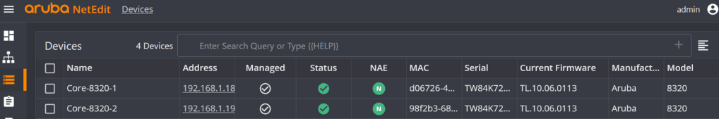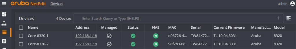 Also checking the core switches in NetEdit