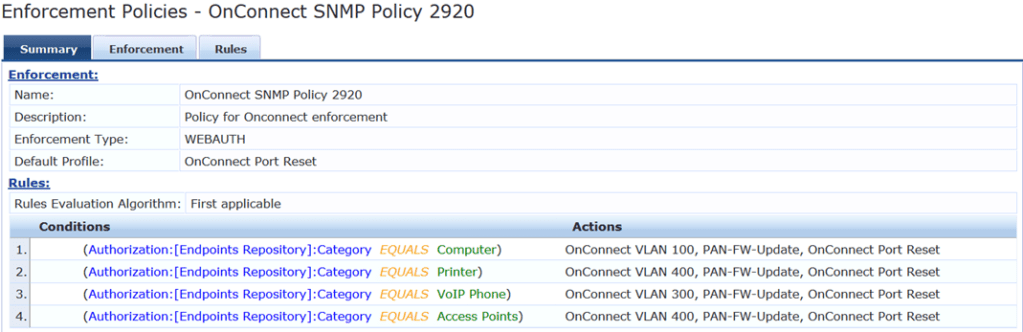 The main aim here is to be able to demonstrate ClearPass OnConnect with Aruba switch 2920 in which, based on the profiled device category on ClearPass, the devices (IoTs) will be put into their respective VLANs and all this is based on SNMP.