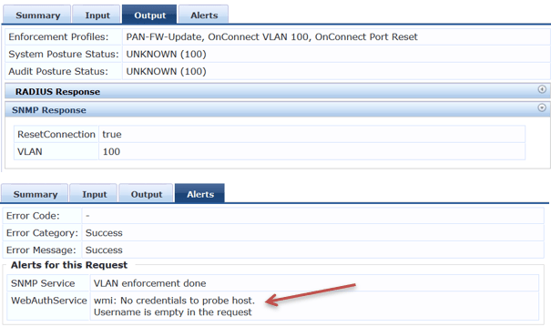 - WebAuth is simulated internally by ClearPass when the SNMP trap is received from the switch.