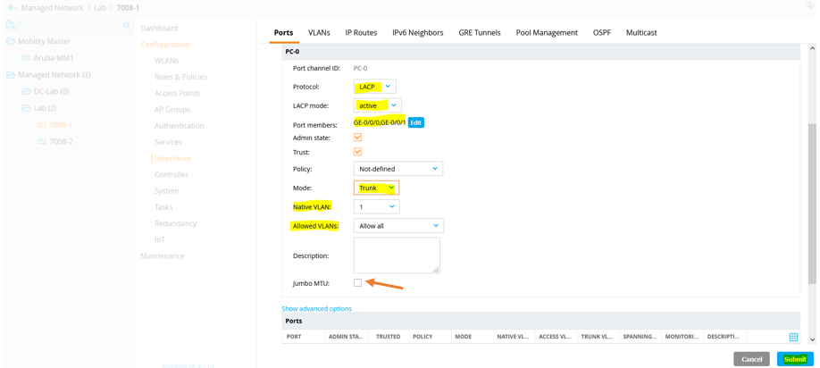 Here we are covering the configuration of the controller with enabling jumbo frames. Note that you need to enable jumbo frames on your LAN switches between APs and the controllers/MDs.