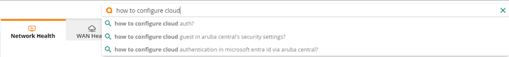 Also note that all the information that is displayed is based on latest HPE Aruba authoritative content and not like a classic search engines that often don’t retrieve the latest HPE Aruba content. Then as you type your search query, it tries to autofill it with relevant info, in the following example it is about Cloud Authentication.