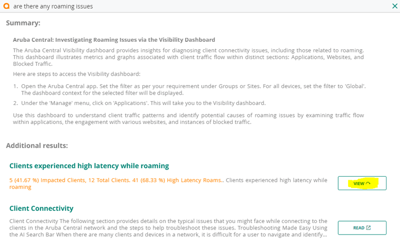 Another interesting aspect of the GenAI search is to help identify issues and then assist with Root Cause Analysis (RCA). Let’s tackle wireless roaming issue.