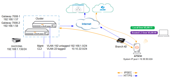 The Microbranch (MB) solution can be seamlessly integrated with leading cloud security providers such as Zscaler through the Aruba Central “Cloud Connect” service. This integration facilitates the establishment of a secure connection between the Microbranch AP and one or multiple cloud-hosted enforcement control points. Specifically, in the case of Zscaler, this connection is established with Zscaler Internet Access (ZIA) Public Service Edges.