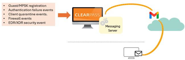 - Send email notifications when ClearPass detects a security event through its integration with an EDR/XDR platform (e.g., CrowdStrike).